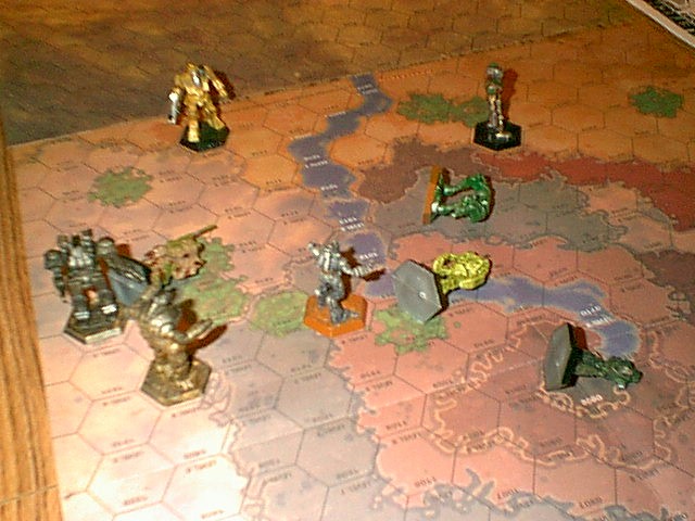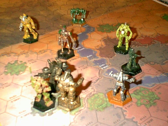 One big cluster of a battleMoving to the edge of the plateau proved to be a bad choice for the Dreadnok Raiders. The third round was a scary moment for Sgt Buzz in his Knight as he took some heavy damage from both the Stormcrow and the Vapor Eagle. Sgt Buzz barely managed to keep the Knight standing under the barrage of missiles and laser fire and he immidiately stepped back from the edge as soon as he had a second to think.