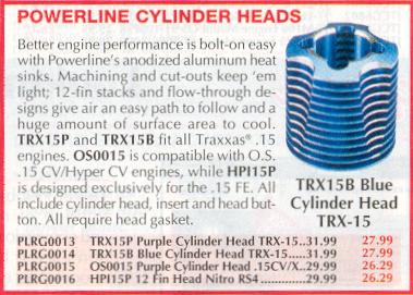 I guess its time to start looking for a new cylinder head. It would cost $40.00 for the cooling head from Traxxas, but with the replacement deal through Traxxas I think I could get the whole engine for about $60.00! On the other hand, if I bought the Powerline Cylinder Head from Tower Hobbies, I could get that for $27.99, and I might as well order a Du-Bro fuel filter and some Great Planes fuel tubing.